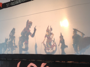 - ฉาก: มีจอผ้าขาวกั้นระหว่างผู้ชมกับผู้เชิด โดยผู้เชิดจะอยู่ด้านหลังและใช้แสงตะเกียงหรือหลอดไฟส่องให้เกิดเงาของหุ่นบนจอ